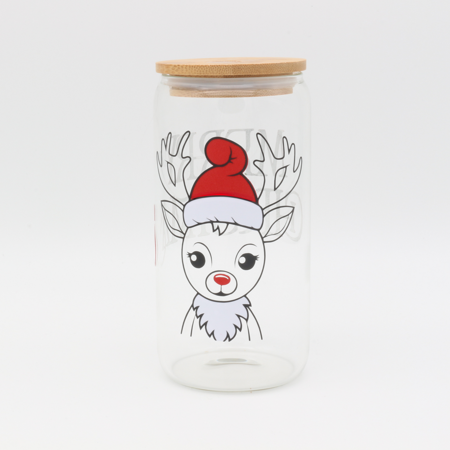 Glas mit Strohhalm und Deckel - Merry Christmas Rudolf