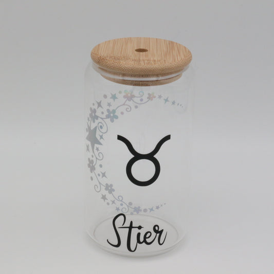 Sternzeichen | Schimmer | Trinkglas 460 ml | Strohhalm + Deckel