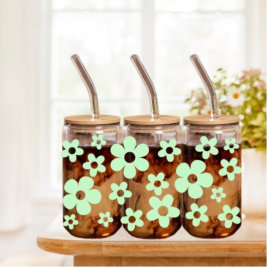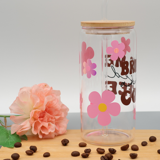 Boho Blumen | Trinkglas 500 ml | Strohhalm + Deckel