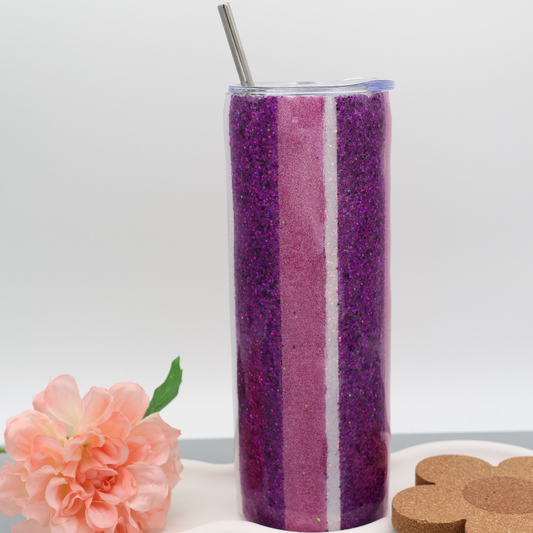 Lila Streifen Glitzer Tumbler | diverse Farben | Edelstahl Tumbler | Epoxidharz Thermobecher | personalisierbar