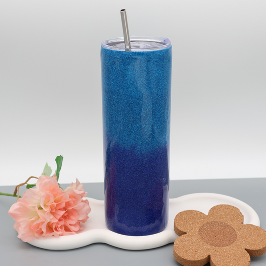 Blauer Ombre Glitzer Tumbler | Edelstahl Tumbler | Epoxidharz Thermobecher | personalisierbar