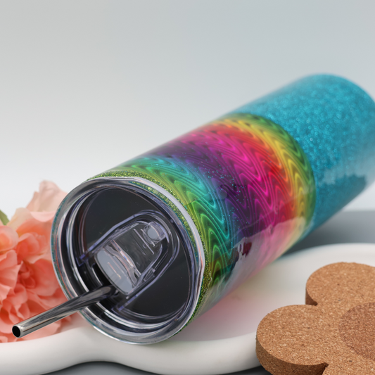 Türkiser Regenbogen Glitzer Tumbler | Edelstahl Tumbler | Epoxidharz Thermobecher | personalisierbar