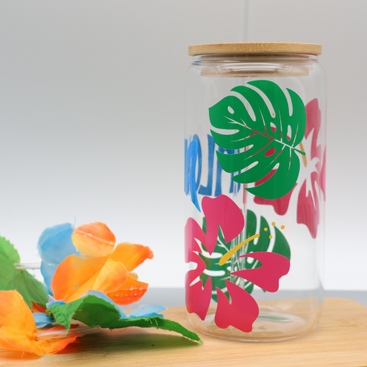 Aloha | Trinkglas 500 ml | Strohhalm + Deckel