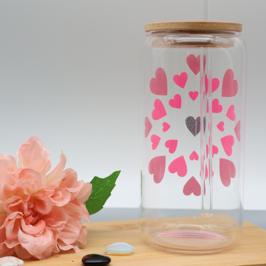 Checkered Heart | Trinkglas 500 ml | Strohhalm + Deckel