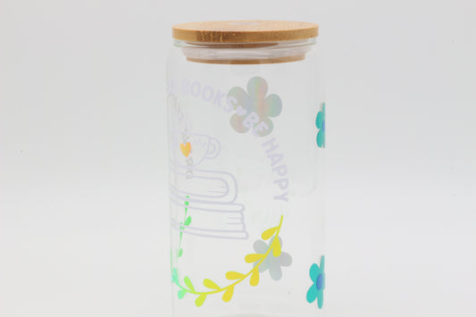 Books & Coffee | Trinkglas 500 ml | Strohhalm + Deckel