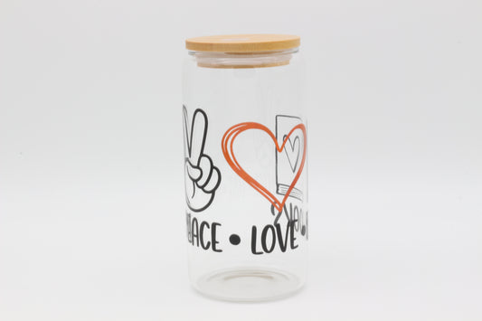 Peace Love Books | Trinkglas 500 ml | Strohhalm + Deckel