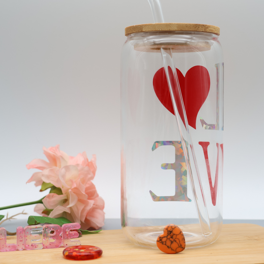 LOVE | Trinkglas 500 ml | Strohhalm + Deckel