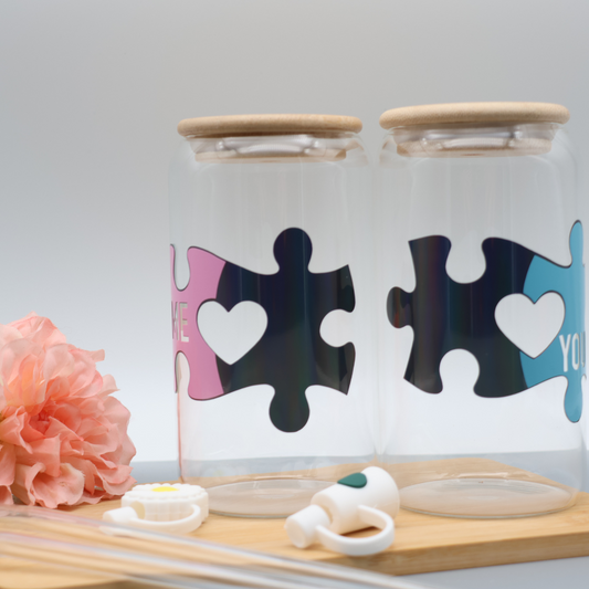 Set You & Me - 2 Gläser (je 460ml) mit Strohhalm und Deckel