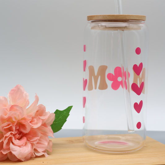 Mom | Trinkglas 500 ml | Strohhalm + Deckel