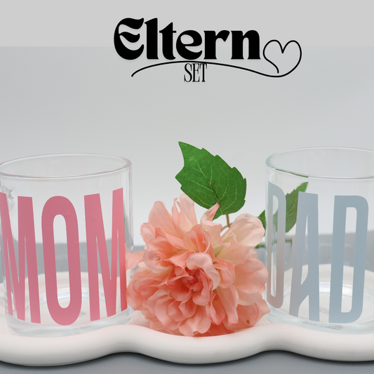 Glas Tasse ELTERN SET 300 ml - Kaffeebecher Trinkglas Teetasse - Geschenkidee für Kaffeeliebhaber