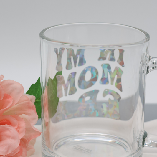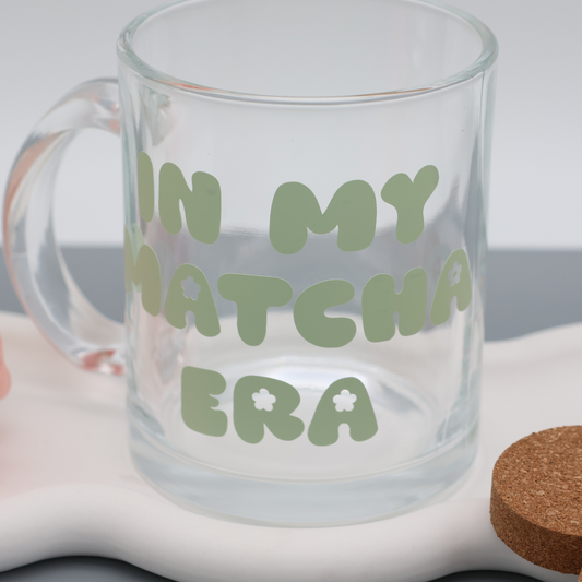 In my Mom Era - 300ml Glas Tasse | trendige Kaffeetasse mit frechen Vinylmotiven |für heiße Getränke zuhause oder im Büro