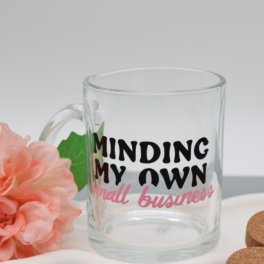 Minding my own small business 300ml Glas Tasse | trendige Kaffeetasse mit frechen Vinylmotiven |für heiße Getränke zuhause oder im Büro