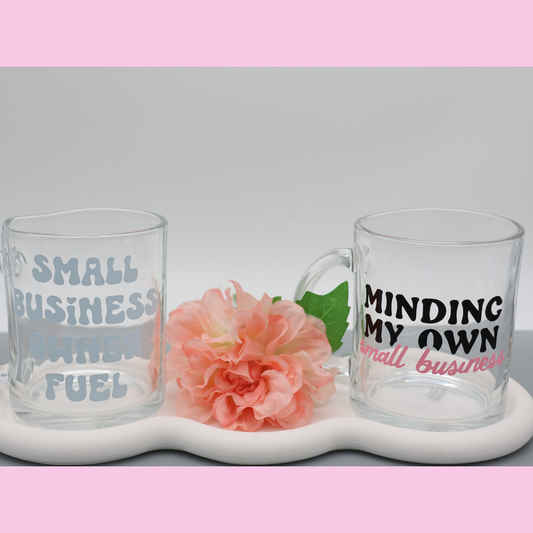 Small business owner fuel - 300ml Glas Tasse | trendige Kaffeetasse mit frechen Vinylmotiven |für heiße Getränke zuhause oder im Büro