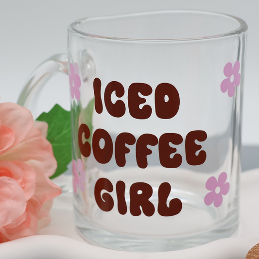 Iced coffee girl 300ml Glas Tasse | trendige Kaffeetasse mit frechen Vinylmotiven |für heiße Getränke zuhause oder im Büro