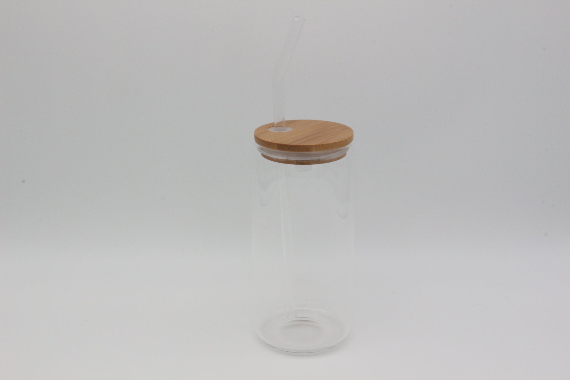 Trinkglas mit Bambusdeckel und Strohhalm - blanko