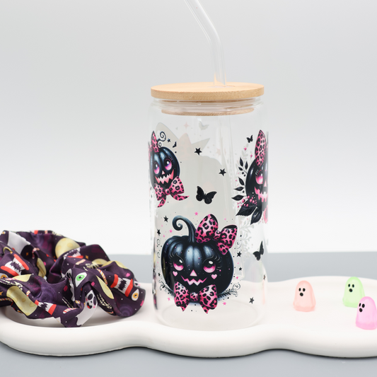 Creepy Pumpkin Trinkglas | Glas 500 ml | Strohhalm + Deckel
