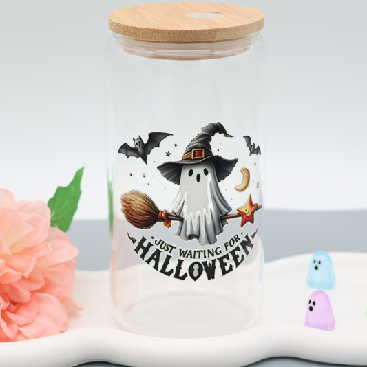 Just waiting for Halloween Trinkglas | Strohhalm und Deckel | 500ml Glas