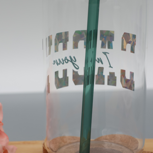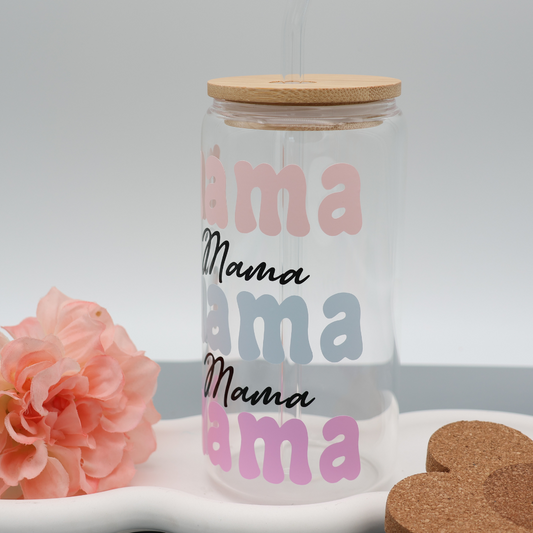 Mama Trinkglas | Trinkglas 500 ml | Strohhalm + Deckel