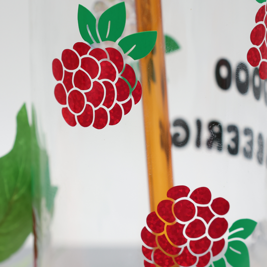 Himbeeren | Trinkglas 500 ml | Strohhalm + Deckel