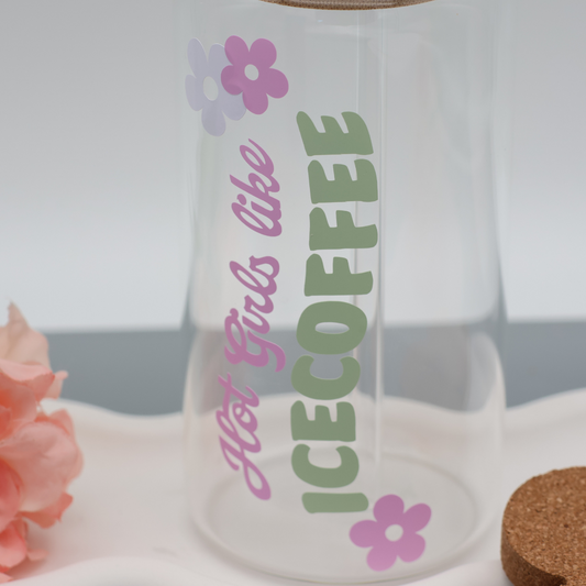 Hot Girls like ICECOFFEE | Trinkglas 500 ml | Strohhalm + Deckel