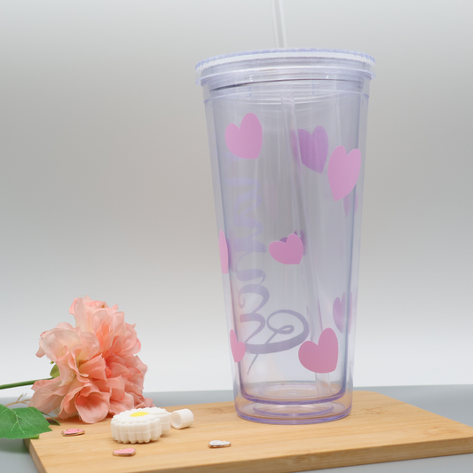 Trinkbecher mit Strohhalm - Hearts personalisiert