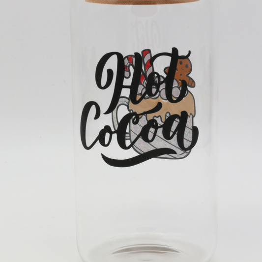 Glas mit Strohhalm und Deckel - Hot Cocoa